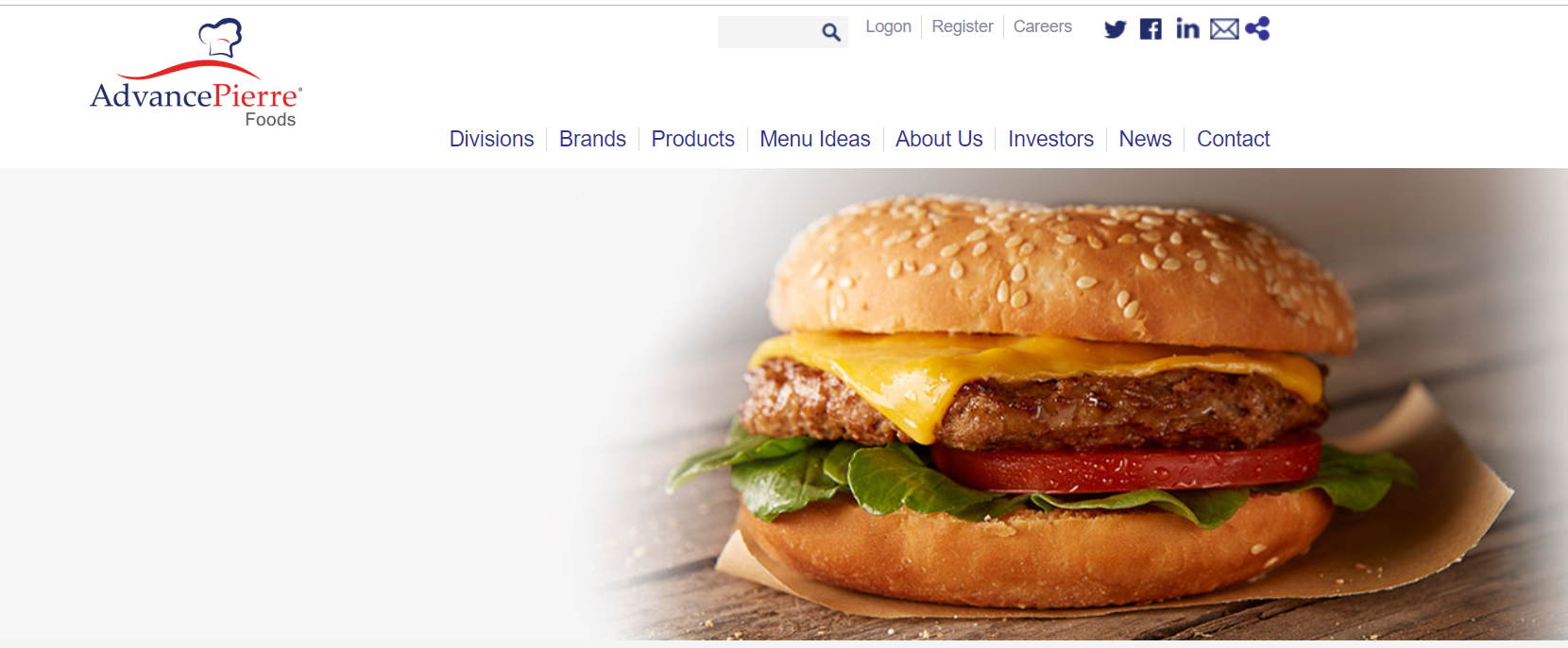 官网显示,AdvancePierre食品公司的历史可以追溯到1946年,2016年7月15日在纽交所上市,是美国的全国性生产商和分销商,核心渠道为餐饮服务、零售、便利店、学校,主要产品为即食三明治、三明治原材料等。