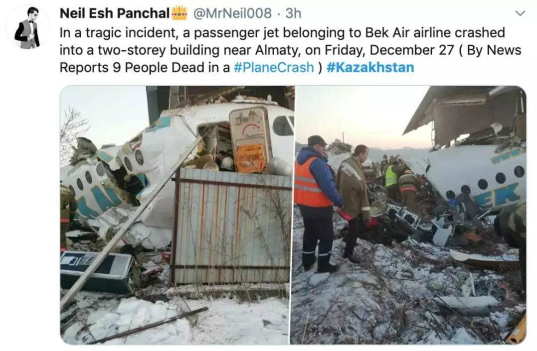 阿拉木图机场在声明中称,失事的航班为贝克航空Z92100,当天早晨从阿拉木图机场起飞,目的地是哈萨克斯坦首都努尔苏丹。