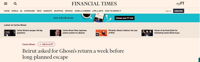 原标题:英媒称黎巴嫩政府曾帮助戈恩潜逃,日外务省:两国交换过意见,但无关“逃跑”