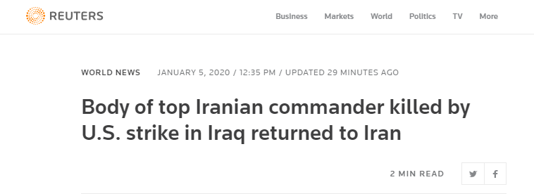 当地时间3日凌晨,美军对伊拉克巴格达国际机场发动无人机袭击,杀死伊朗伊斯兰革命卫队负责海外行动的指挥官苏莱马尼将军,以及伊拉克什叶派民兵组织“人民动员组织”的实际掌权人穆汉迪斯。在伊朗领导人3日的一系列回应中,为苏莱马尼“殉难”哀悼、猛烈抨击美国“暴行”、誓言将“严厉报复”等措辞贯穿始终。