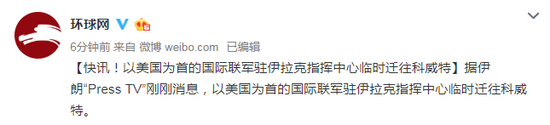 原标题:快讯!以美国为首的国际联军驻伊拉克指挥中心临时迁往科威特