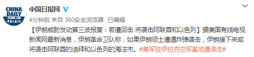 原标题:伊朗威胁发动第三波报复:若遭回击将袭击阿联酋和以色列