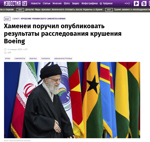 【环球网快讯】俄罗斯《消息报》刚刚援引伊朗伊斯兰共和国广播电视台(IRIB)的消息称,伊朗最高领袖哈梅内伊下令公布乌克兰国际航空公司客机失事的调查结果。