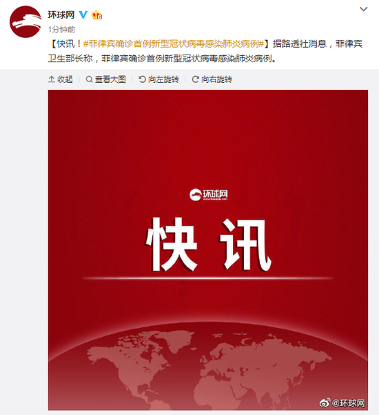 原标题:快讯!菲律宾确诊首例新型冠状病毒感染肺炎病例