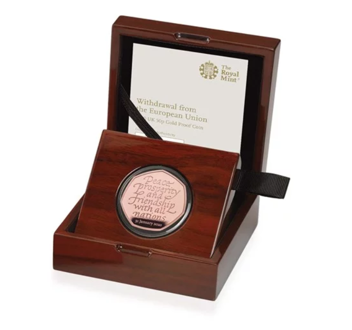 根据英国皇家铸币局(Royal Mint)官方网站显示,售价为945英镑(约合8620元人民币)的英国脱欧50便士纪念金币(约合4.6元人民币)于当地时间1月31日中午售罄。