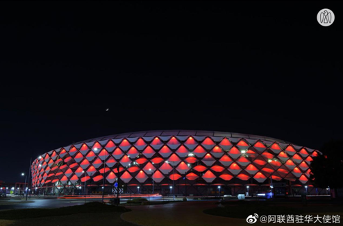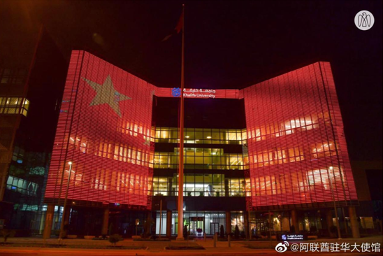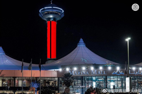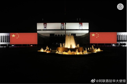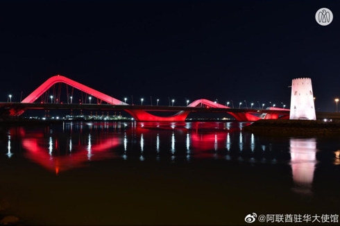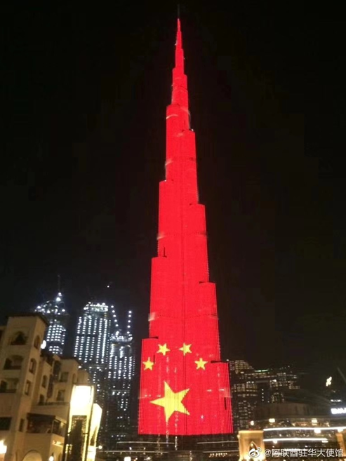 阿联酋阿布扎比以及迪拜多处地标亮起“中国红”: