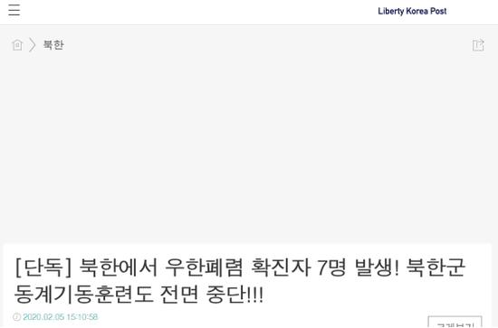 2月5日,韩国媒体“liberty korea post”曾发布所谓的独家消息称,朝鲜出现7例新型冠状病毒感染的肺炎确诊病例,朝鲜军人训练全面中断。