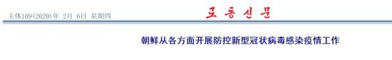 朝鲜《劳动新闻》2月6日发布的题为《朝鲜从各方面开展防控新型冠状病毒感染疫情工作》的文章介绍称,在国家紧急防疫体系的统一部署下,中央和各道、市、郡紧急防疫指挥部以及工厂企业等各单位积极采取一系列防控疫情措施。