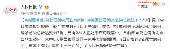 原标题:美国新增3例新冠肺炎死亡病例,美国新冠肺炎感染总数达117人