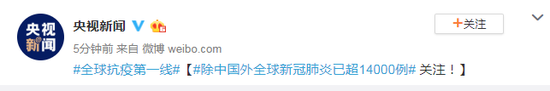除中国外全球新冠肺炎已超14000例 关注!