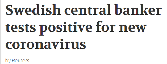 原标题:快讯!瑞典央行副行长新冠病毒检测结果呈阳性