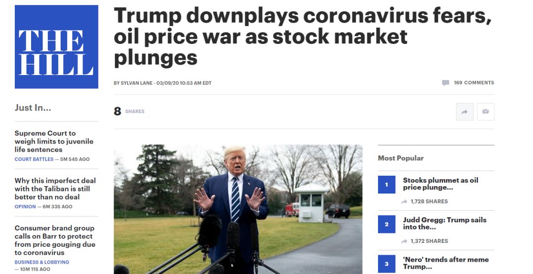 目前,已经有美国媒体注意到了他的这个帖文。美国《国会山报》就认为特朗普这是想通过对美国新冠病毒疫情轻描淡写,来缓解市场下跌的压力。