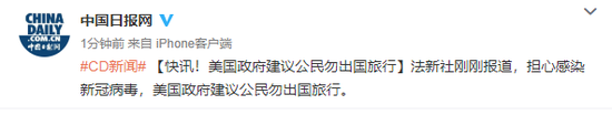 法新社刚刚报道,担心感染新冠病毒,美国政府建议公民勿出国旅行。
