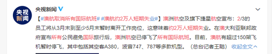 原标题:澳航取消所有国际航班 澳航约2万人短期失业