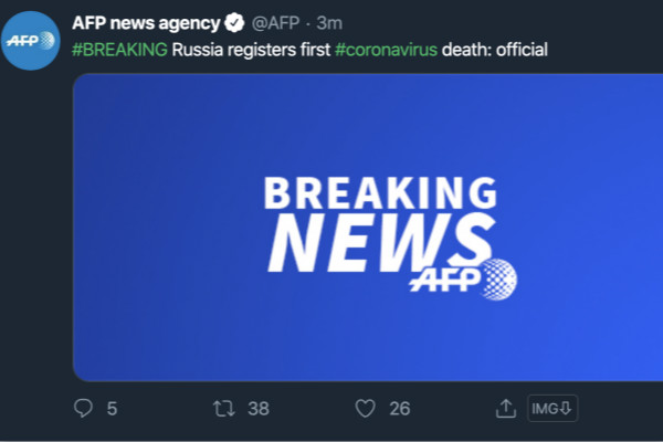 [海外网3月19日|战疫全时区]据法新社报道,俄罗斯当地时间19日报告该国首例新冠肺炎死亡病例。