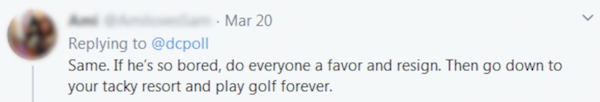 “他如果感到如此无聊,拜托他赶紧辞职,回到你俗气的度假村,打一辈子高尔夫吧。”