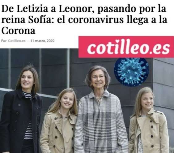 南欧人民也许是因为天气热的缘故,话多嘴杂,各种你也分不清是搞笑段子还是流言蜚语的信息充斥媒体。西班牙的华人微信群也是热热闹闹,真真假假。3月11日西班牙著名花边新闻网站cotilleo(西语意为八卦)刊出一条“大新闻”:王室感染新冠病毒。西班牙语原标题:El Coronavirus llega a la Corona。