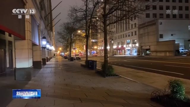 央视记者 殷岳:星期六晚上美国首都华盛顿马路上几乎是没有人的。在十字路口周围,平时周末很多人都会来这里聚餐,我刚刚在这走了一圈,很多酒吧和餐饮都已经关闭了,周围原先很繁华的商业场所现在悄无声息、廖无人烟。