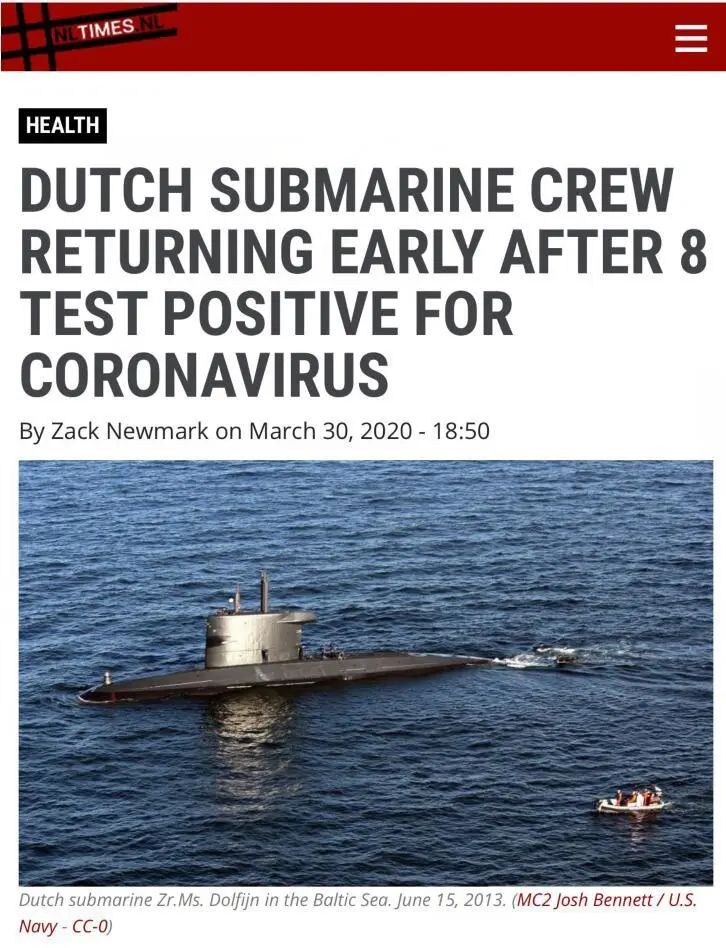 原标题:惨了,荷兰潜艇上8名水兵新冠病毒检测呈阳性