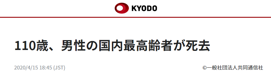 原标题:快讯!日本国内最长寿男性去世,终年110岁