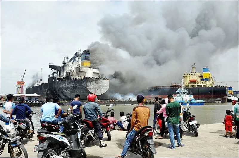 原标题:印尼苏北棉兰一油轮着火 致1人死亡22人受伤