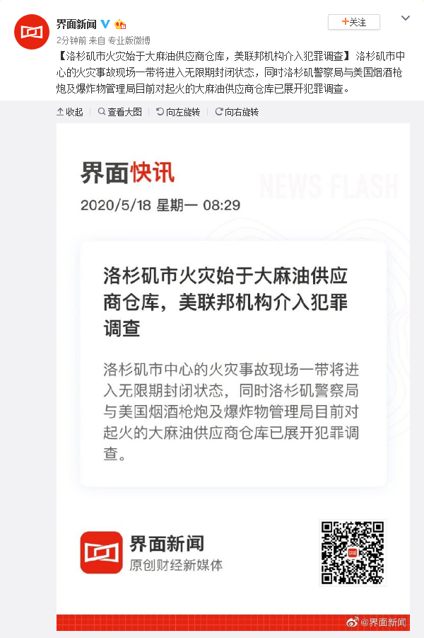 原标题:洛杉矶市火灾始于大麻油供应商仓库,美联邦机构介入犯罪调查