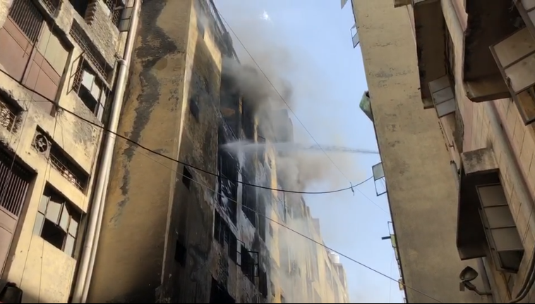 总台记者 李琳:这里是位于印度首都新德里西北部的一个制鞋工厂,在今天早上8点半左右,这里发生了一场大火,现场我们看到这一个五层的楼就是发生火灾的楼,现在这个楼里还是在不断地冒出黑色的浓烟,救火作业也正在进行,消防人员从对面楼房不断向现场洒水。由于发生火灾的是一个制鞋工厂,所以现场的气味十分地刺鼻,另外,在现场有很灼热的体感。我们看到,发生火灾的建筑前面这条路十分的狭窄,在我们过来现场的这条路上看到有八到九辆消防车排在这条路上。这家工厂在疫情封锁期间是关闭的,所以在火灾发生的时候工厂内没有人员,所幸到现在为止,没有人员伤亡。
