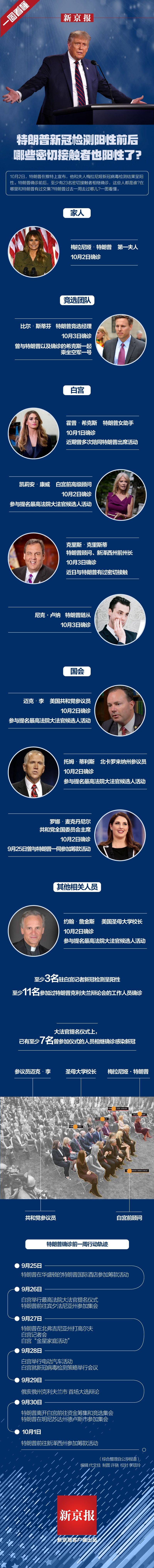 原标题:一图看懂|特朗普新冠检测阳性前后:哪些密接者也阳性了?