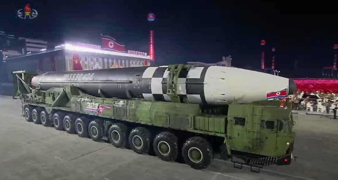 朝鲜电视台视频截图此前有分析人士表示,这一新型弹道导弹装载在一辆有11轴22轮的运输车上,如果投入使用,它将成为世界上最大的公路机动洲际弹道导弹(ICBMs)之一,并且能够攻击更多目标,使拦截更加困难。