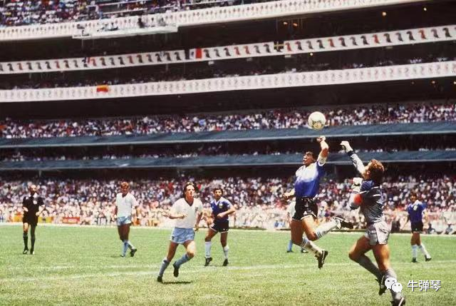 对阵英格兰,他先是用上帝之手打入一球,然后又连过六人,攻入一球。前者是世界永恒的谜团和经典,后者被评为足球史上最佳的一个进球。