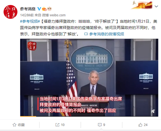 原标题:福奇力捧拜登政府:哈哈哈,“终于解放了”