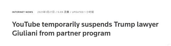 原标题:美媒:YouTube暂封特朗普律师朱利安尼“合作伙伴计划”