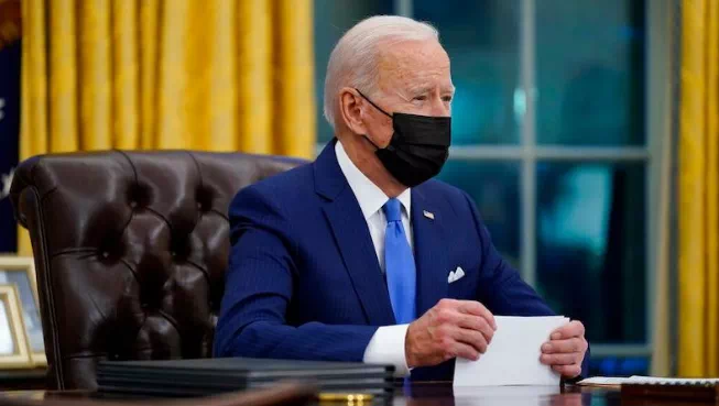 1月21日、22日,他接连签署了10项和新冠疫情应对有关的行政命令,其中包括强令所有人在联邦财产、联邦建筑物范围内戴口罩,以及在飞机和其他公共交通工具上戴口罩等。