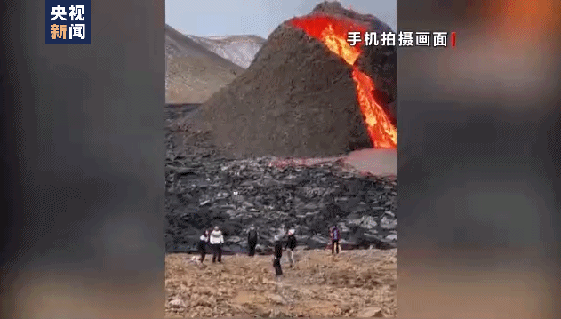连日来, 冰岛西南部雷克雅尼斯半岛一火山持续喷发,已经成为当地一处旅游景观。当地时间5日,在火山口周围出现了两条新的火山喷发裂缝,岩浆不断喷出,场面非常壮观。