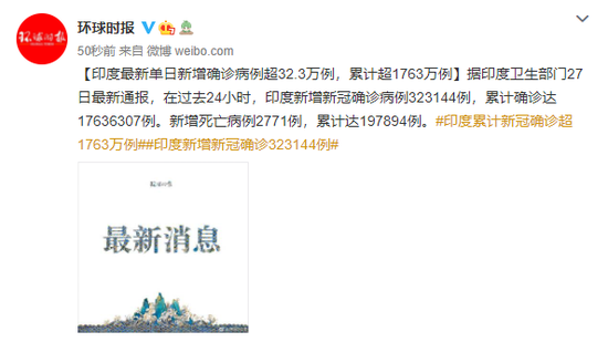 原标题:印度最新单日新增确诊病例超32.3万例、累计超1763万例