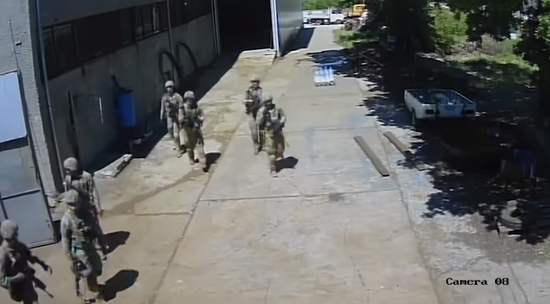 据今日俄罗斯等网站30日报道,这起武装入侵事件发生在5月11日。当时,美国和其他盟国的士兵们正在保加利亚参加北约“快速反应”军演。工厂的监控录像显示,7名携带突击步枪的美国士兵进入工厂,厂里的工人们没有反抗。在发现并没有“敌方”战斗人员后,这些美国士兵离开了工厂。