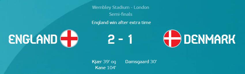 1:2,丹麦结束了本届欧洲杯之旅,而英格兰与意大利会师最终决战。