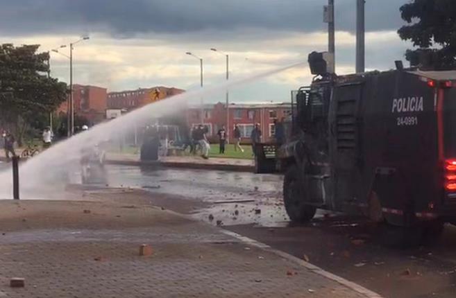 在第二大城市麦德林,游行人群一度封锁部分路段,阻断交通。在第三大城市卡利等地,发生多起游行人群与警方的暴力冲突。在首都波哥大约有23处游行集会点,多数为和平示威,但在波哥大南部一些地区局势一度紧张,警方用高压水枪驱散人群。