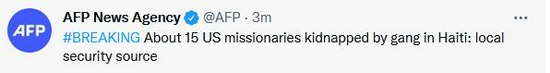原标题:快讯!外媒:约15名美国传教士在海地被绑架
