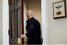 2月3日,拜登在讲话后离开白宫罗斯福会议室