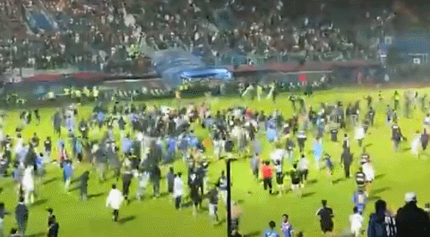当地时间10月1日,在印尼东爪哇省玛琅市,坎朱鲁汉体育场举行的一场印尼足球联赛发生严重骚乱事件。