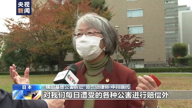 “横田基地公害诉讼”原告团律师 中川瑞代:此次诉讼除了要求对我们每日遭受的各种公害进行赔偿外,我们还提出了驻日美军为我们支付医疗费用的要求。